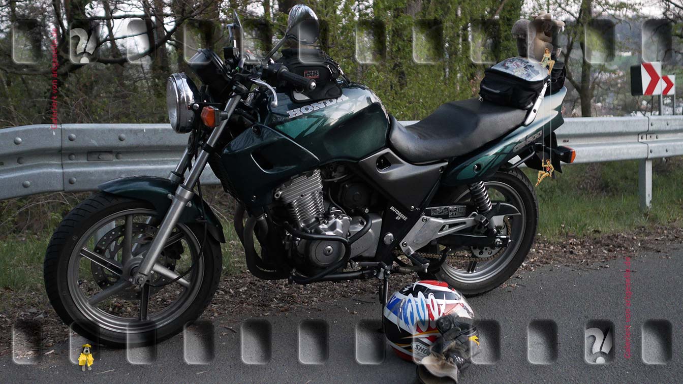 Statt auf dem erwarteten weißen Pferd von einem ebenso sauberen Reiter pilotiert ging es mit mir und einer 350 YPVS auf dem Hinterrad vor den Altar.