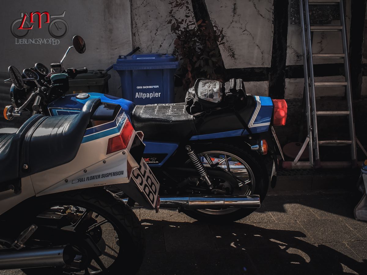 Am Anfang war die Geldnot. Zwei Führerscheinklassen, ein C-Kadett - und dann noch ein Motorrad? Na Logo-Zack, vor allen Dingen ein Motorrad! Dann eben doch "nur" diese von der Vorbesitzerin wegen fehlenden E-Starters vermähte (Nein, das "E" steht nicht für einen Elektro-Starter, sondern für die Ausführung "Elektron", also für die Gußräder statt Speiche).