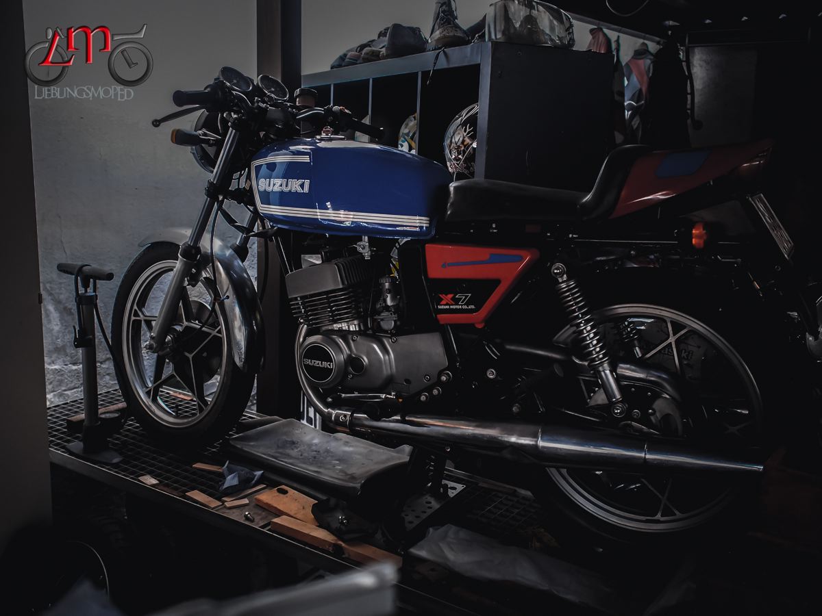 Wir waren ein halbes Jahr zuvor noch allesamt auf zweitaktenen Fünfzigern unterwegs. Ich stieß als letzter zu den großen Maschienen meiner Kumpels. So klaffte schon bis zur nächsthöheren CB 550 Four eine große Lücke, die in immer größer werdenen Abständen aberwitzig bis zur XS 1100 anwuchs. Ich schien der Einzige zu sein, der immer noch mit einer Zwiebacksäge unterwegs war (benannt nach Charakteristik, die zum Fahren mit hohen Drehzahlen zwang). Schnell stellte sich heraus, daß ich eigentlich unser aller Traum pilotierte: Eine X7 fährt sich weiterhin wie eine Fünfziger - nur mit der zwei Jahre lang so sehr ersehnten Leistung! Keine Umstellung der Fahrweise notwendig, ich mußte mich nicht wie meine Kumpels auf das bis zu 3,3 fache Gewicht der neuen Führerscheinklasse einstellen!