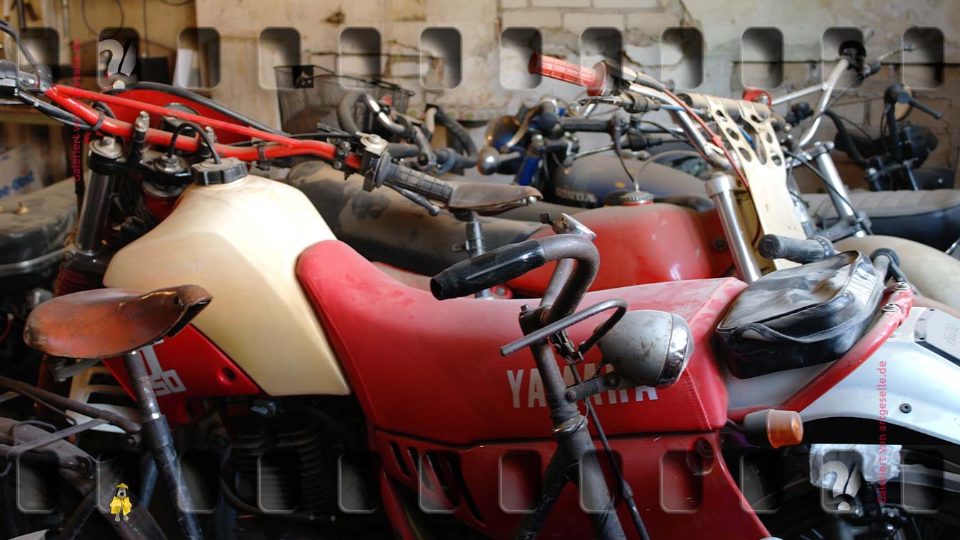 Die Jahre im Norden sind fast ohne Bildnachweis vergangen..alles von den ersten Metern auf Gras bis zum Erreichen Hessenlandes und somit den Ausführungen hier lebt momentan mangels Aufzeichnung nur in meiner Erinnerung: Vespa Ciao, Suzuki RV50, Honda TL 185, Herkules RL50, Kreidler 50 RS, Kreidler Flory, Honda CR250 Elsinore, Maico 440, Honda CB750K6, Yamaha XJ 650, Kawasaki Z500 - Suchanträge im Bekanntenkreis aus der fehlendenden Zeitspanne laufen, Ergebnisse werden zusammengetragen.