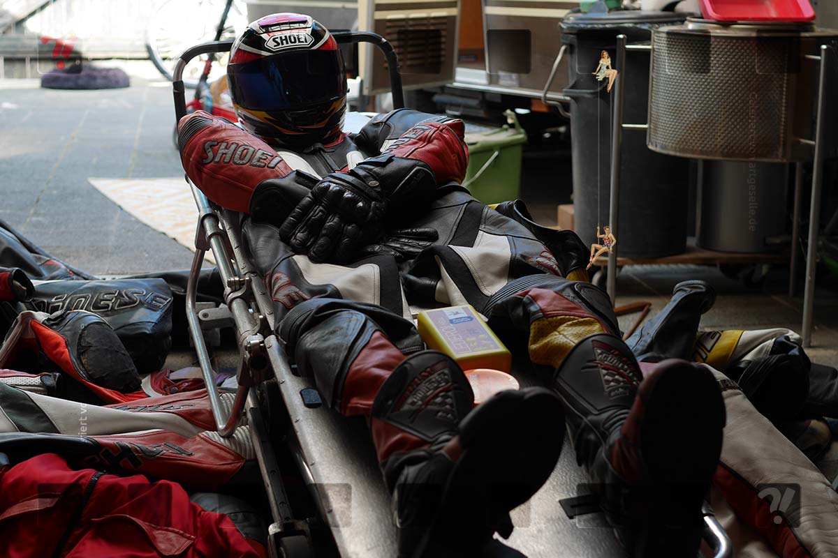 Es geht nicht so sehr, um das "Was genau zieh`ich an?", sondern eher um das überhaupt. Das Leben is`ne Bitch: Die kurze Strecke, der bekannte Weg, die hohe Temperatur..Nix davon rechtfertigt weniger anzuziehen als diejenigen Klamotten, welche man sich für die größere Tour nicht auch anziehen würde. Die nachhaltigen Unfälle von Bekannten sind eher in der kurzen Mittagspause im Blaummann mit dem Bock auf dem Weg zur Erbsensuppe passiert. Dann wenn geringere Geschwindigkeiten trotzdem für eine Saison Pause sorgen können. Straßenbelag thermisch gemischt mit Baumwollfasern eitert nunmal schlecht aus den Schürfwunden. Und solange nicht das MotoGp-Ärzteteam inklusive technischer Aus