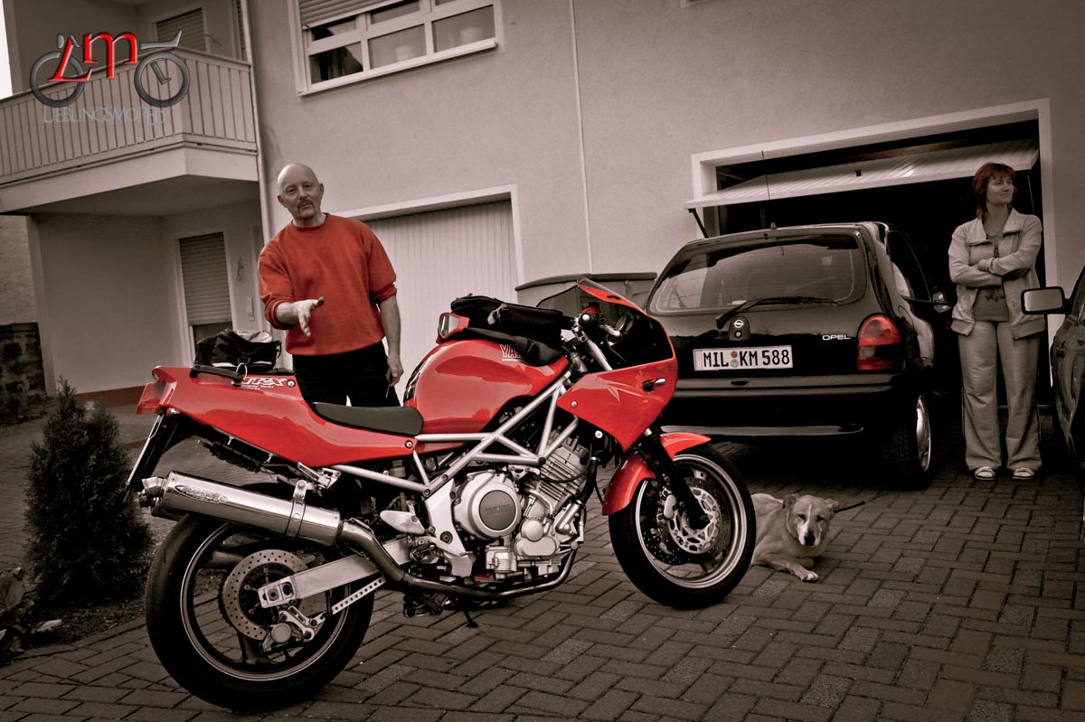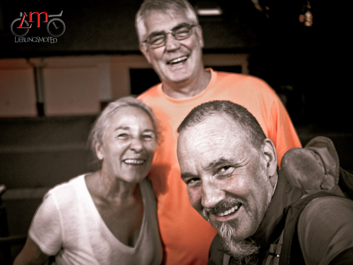 Außerdem werden immer wieder gerne Verwandte und Bekannte aus dem Norden importiert, in Klamotten auf ein Moped gesetzt und genötigt Kilometer zu fressen!