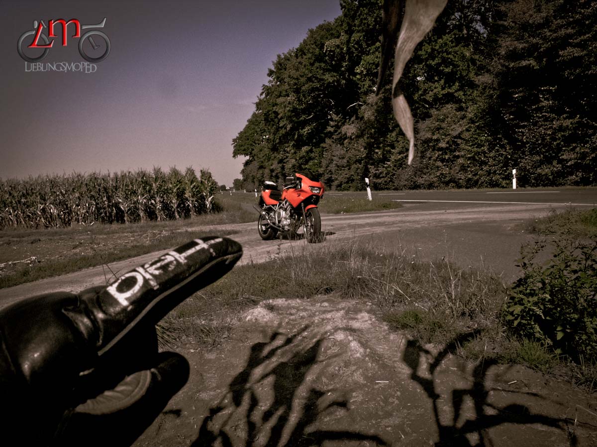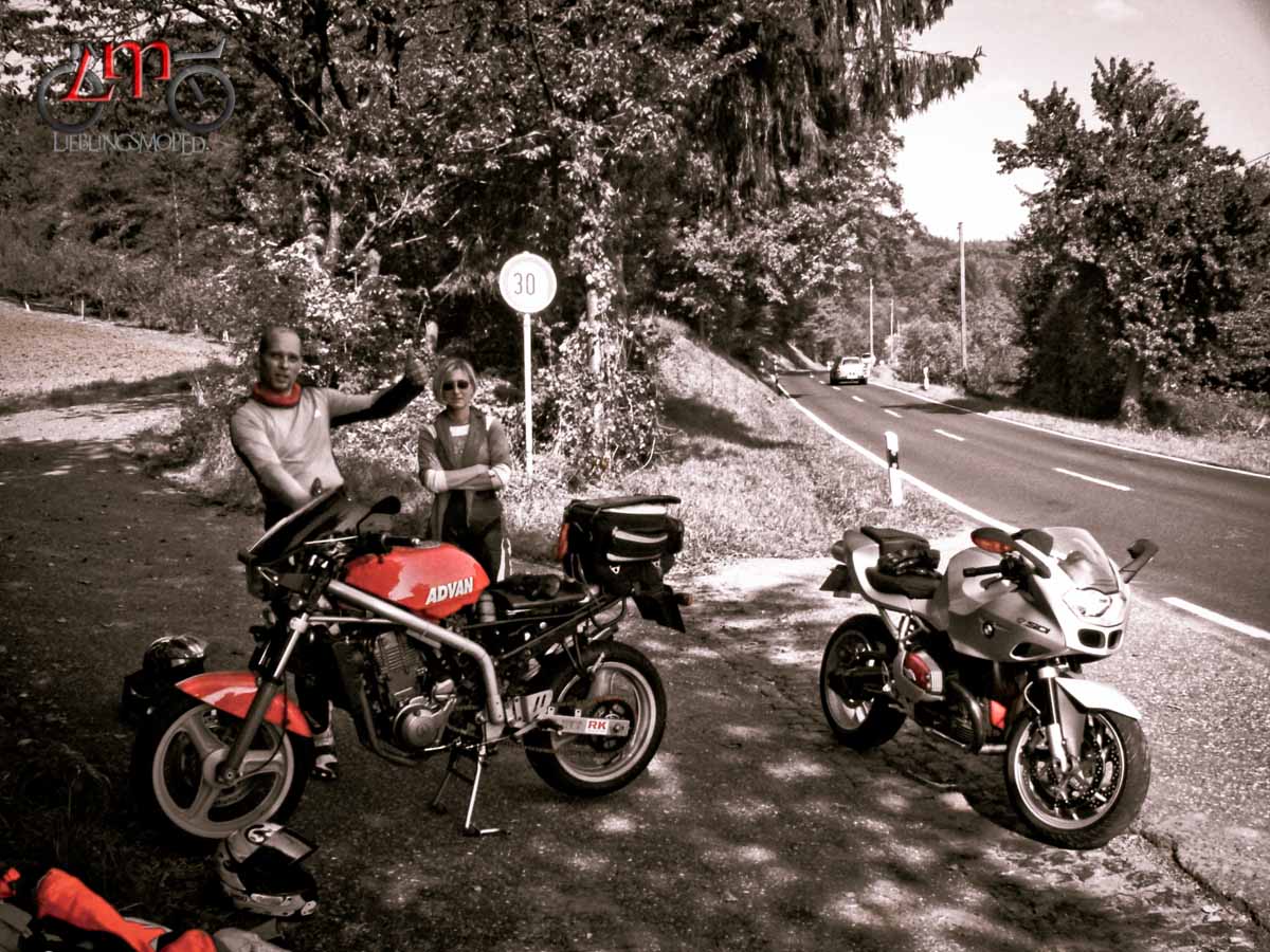 Der Eingang in den Odenwald liegt vor der Tür, Arsch-wund-reiten ohne eine einzige Geschichte doppelt fahren zu müssen. Sehr wohl kann man sich aussuchen, ob einen schroffe Felsen, jegliche Baumart, Auf- und Abhänge oder Haarnadeln ins Schwitzen bringen - im Norden waren die größten Herausforderungen landwirtschaftliches Gerät, Langeweile und die Vorfahrt.