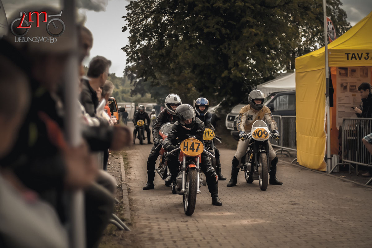 Piloten auf historischen Fahrzeugen mit zwei, vier und drei Rädern (also mit Beiwagen, nicht auf einem Trike) treffen sich bei Schauläufen und Zuverlässigkeitsfahrten. Soweit die Theorie. Bei nicht wenigen scheint der Schalter umgelegt und "ich kann nicht anders"-Kämpfe herrschen wie in alten Zeiten.